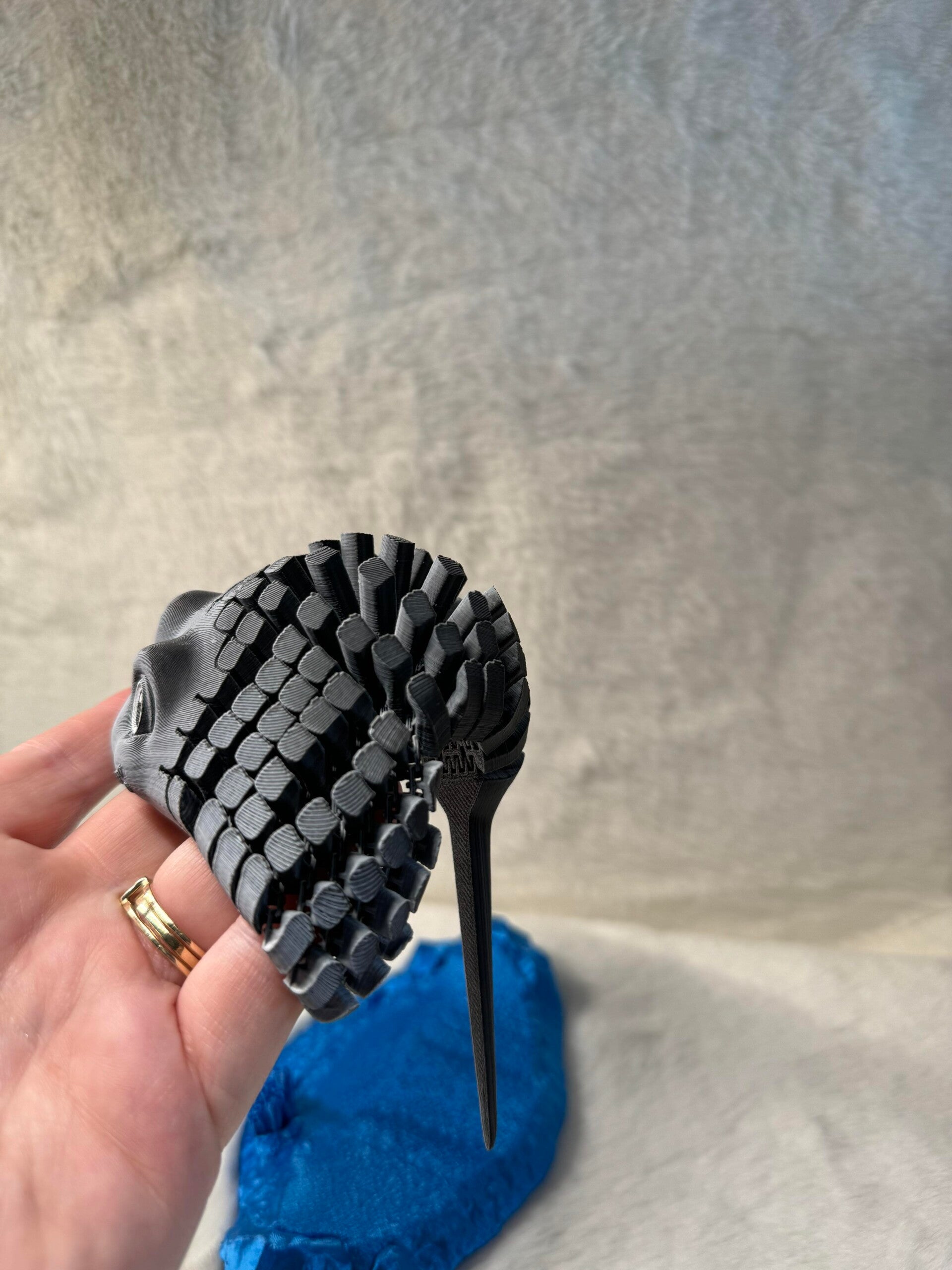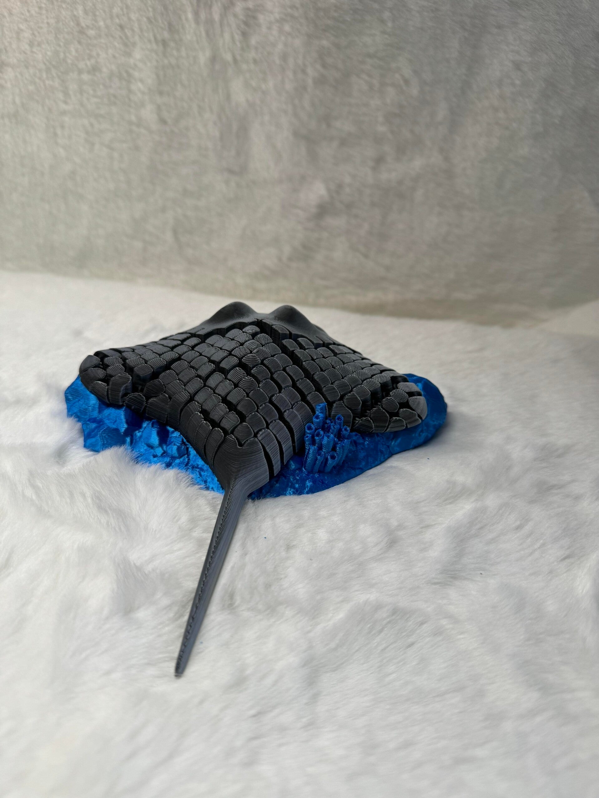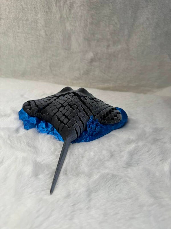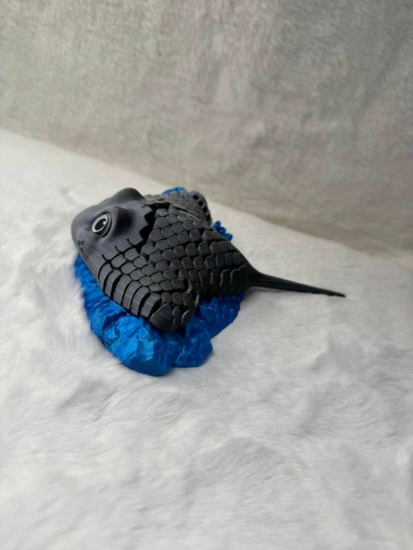 This articulated beauty in a shadow color shift, complete with hand-painted eyes and a blue ocean floor base for lifelike display.