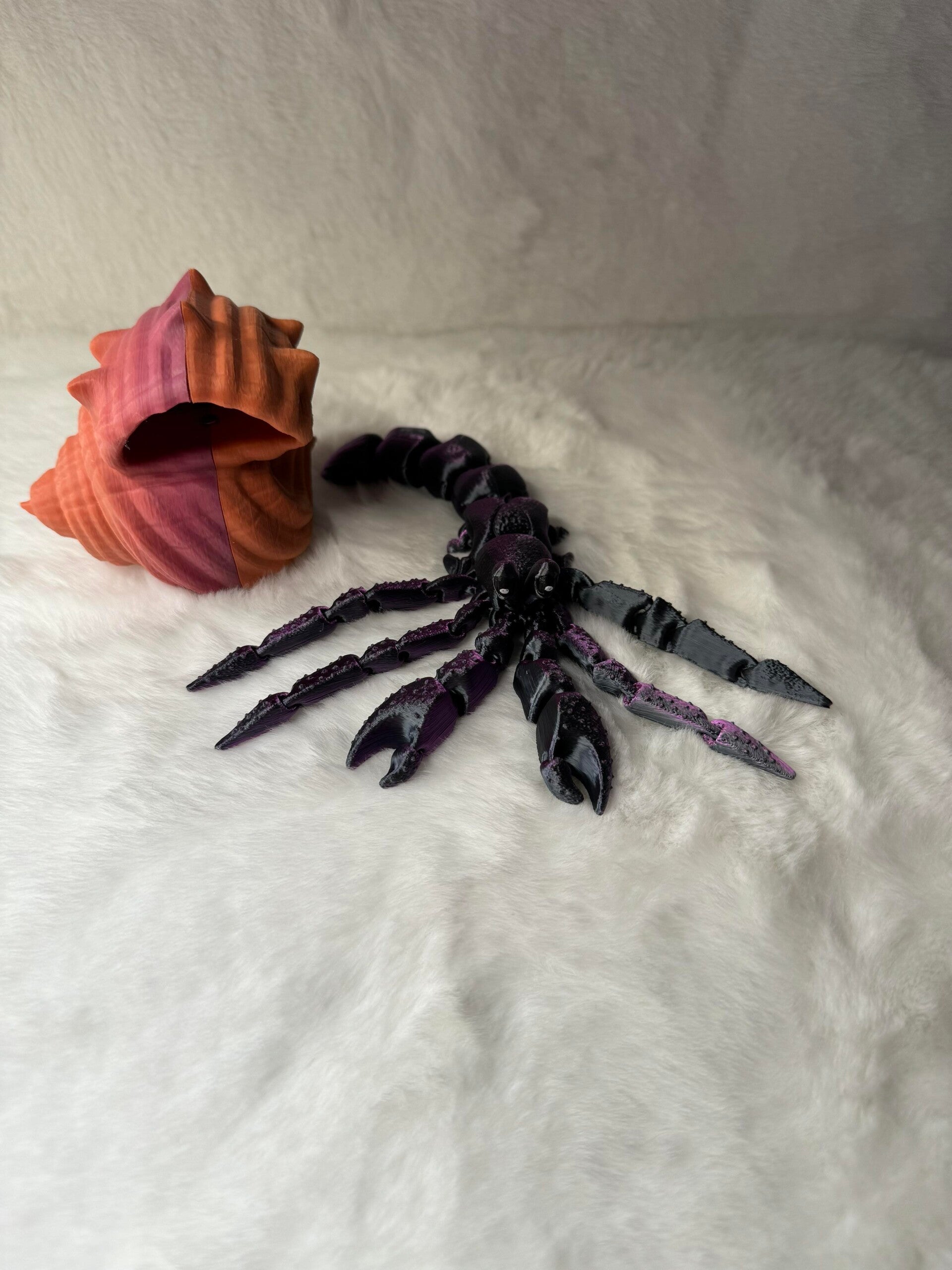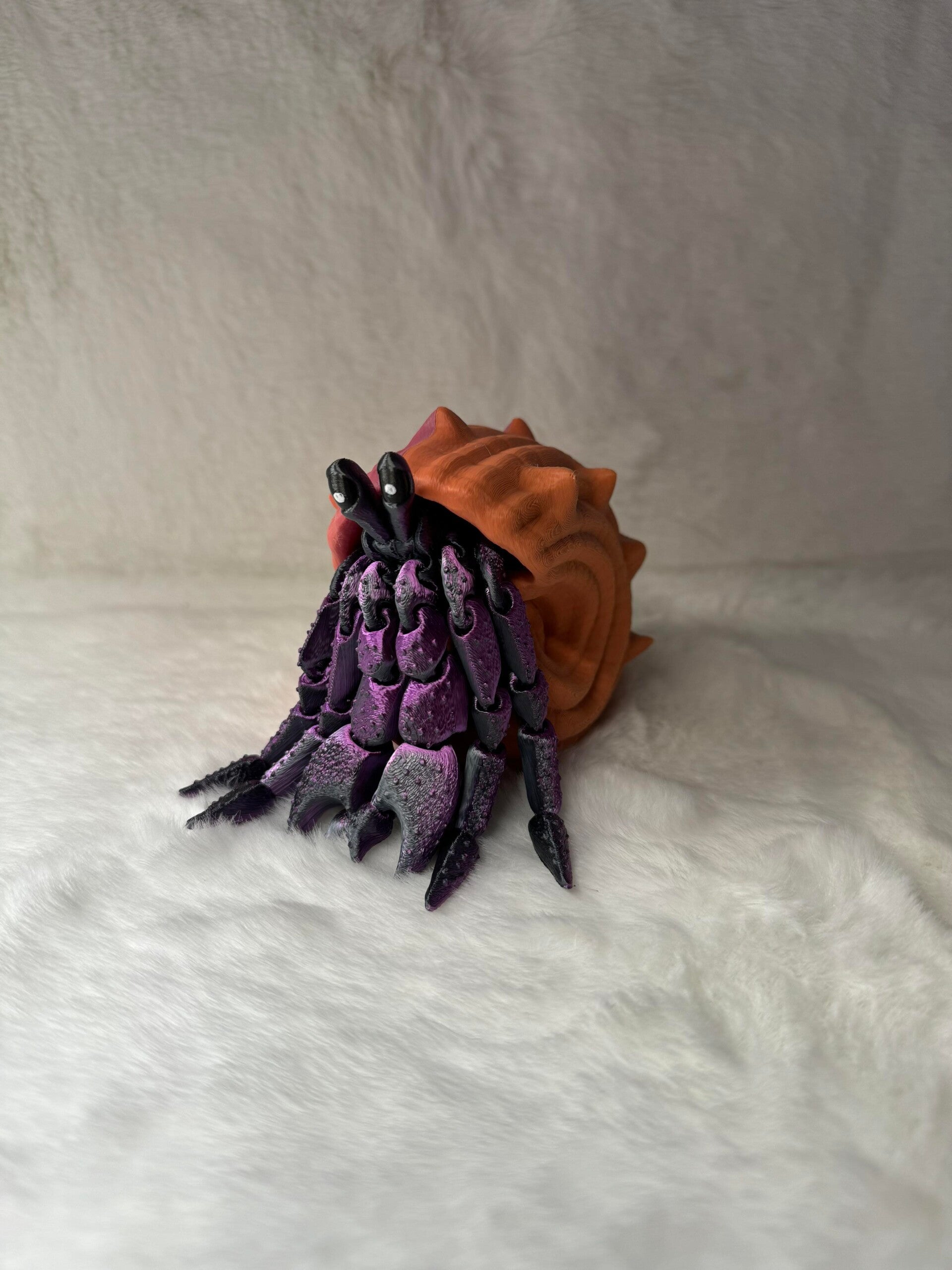 Happy the Hermit Crab-an articulated crab with a removable shell and customizable colors, bring a playful, lifelike touch to your collection.