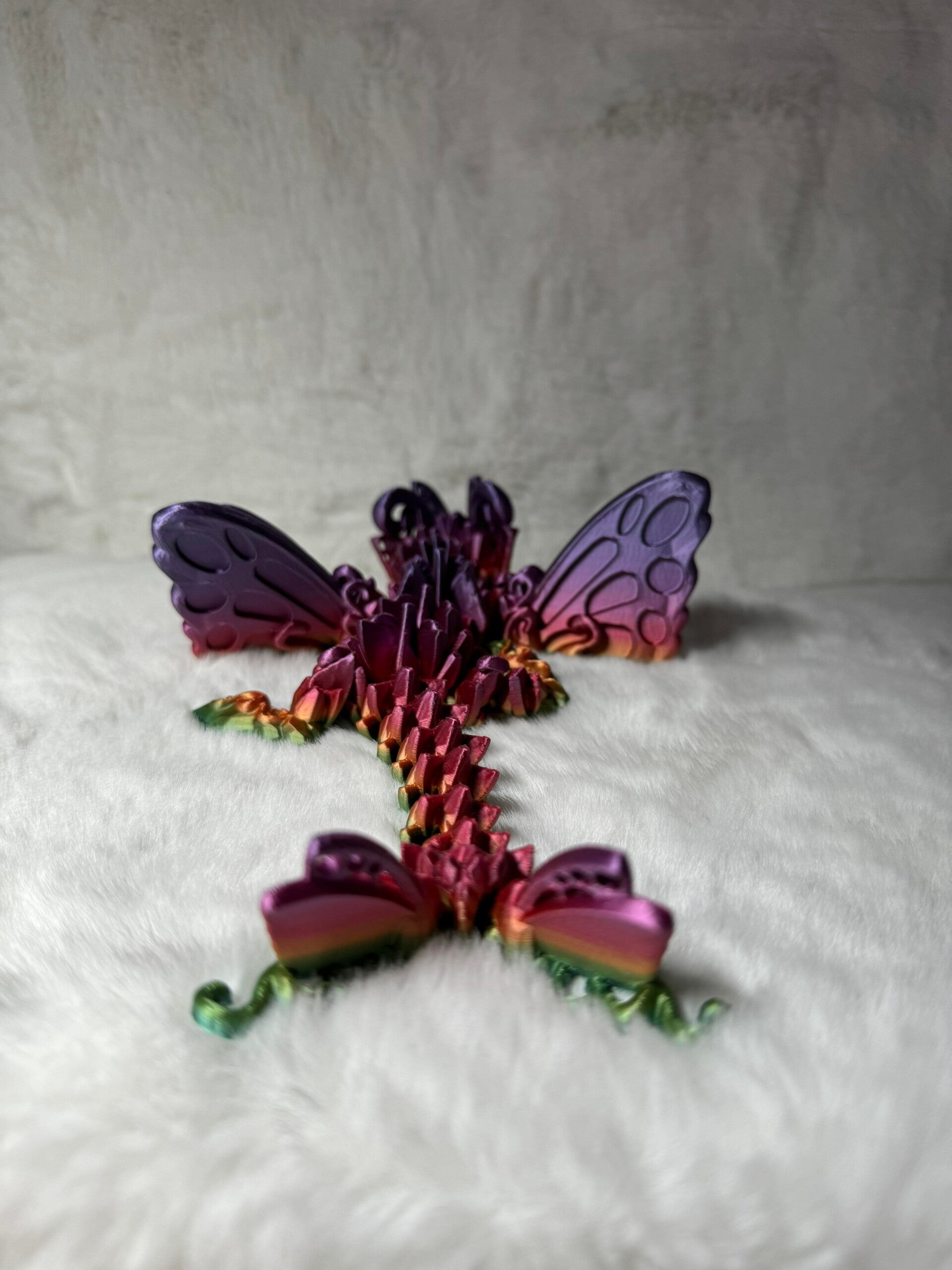 Meet Bindi – The Butterfly Dragon Colorful, graceful, and full of personality, Bindi is a stunning multicolored butterfly dragon with fully articulated joints so you can pose her any way you like. Her hand-painted eyes give her a lifelike charm that makes her truly one-of-a-kind. Multicolored for a vibrant, magical look Fully articulated for endless posing fun Hand-painted eyes for extra personality Adopt Bindi today and let a little magic flutter into your life!